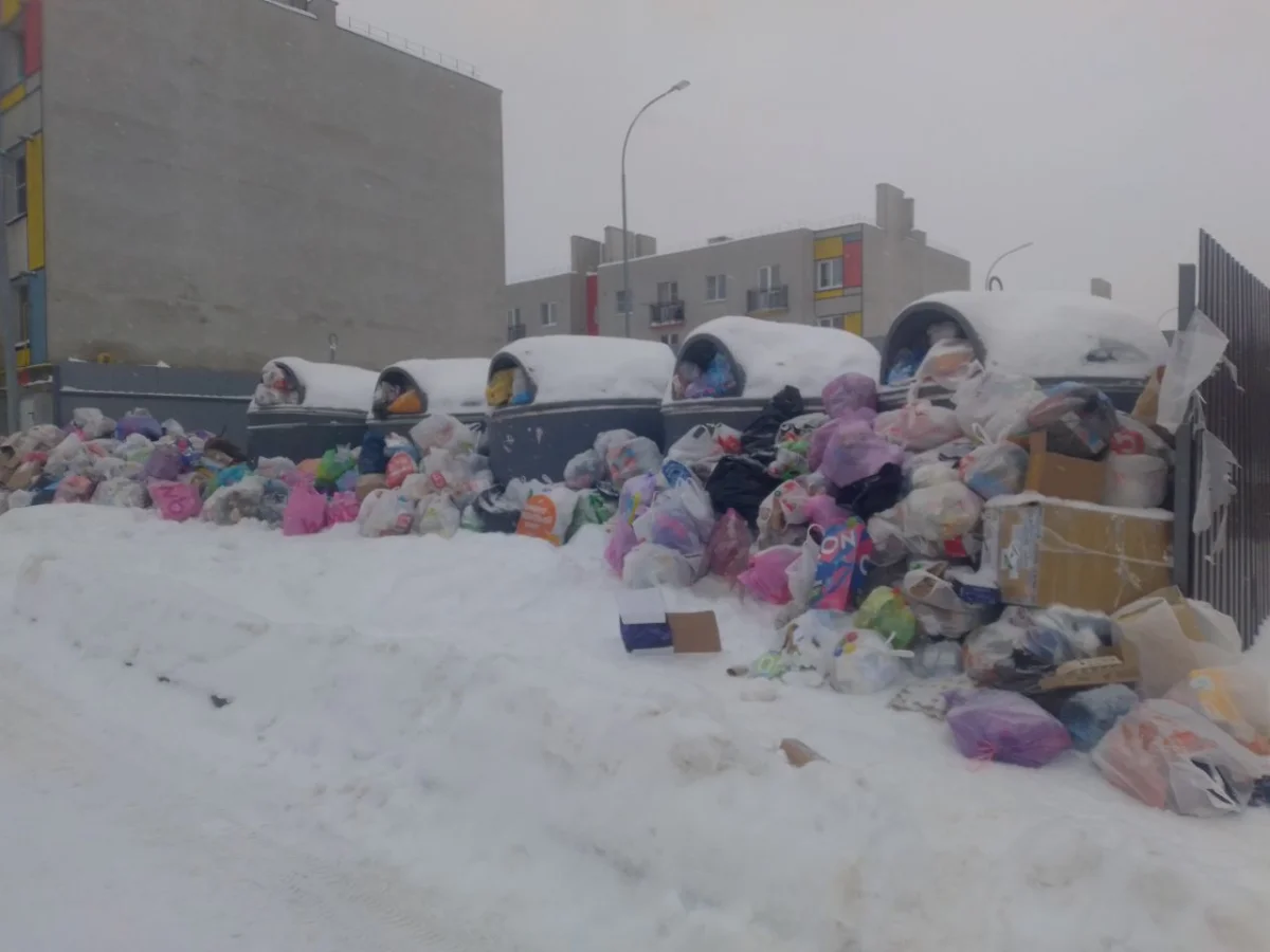 После сильного снегопада с вывозом мусора в городе возникли большие проблемы.