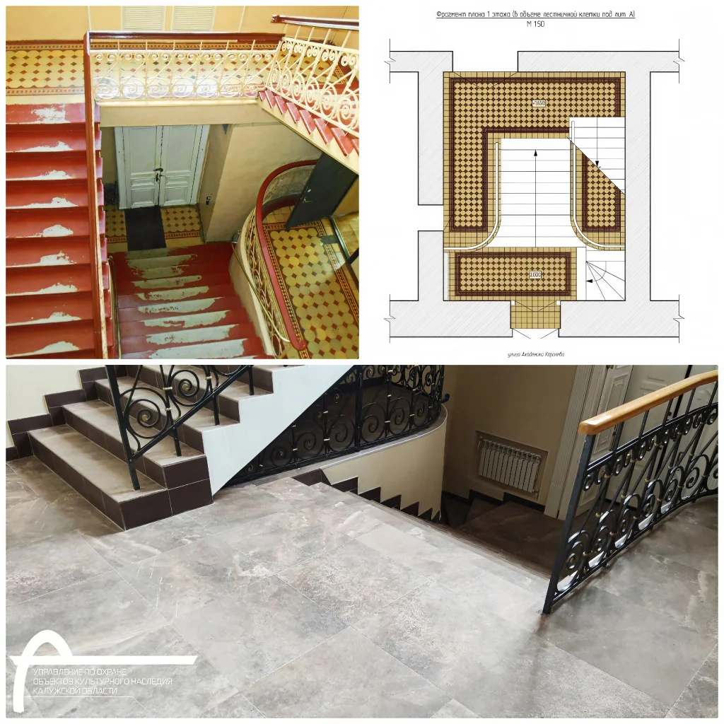 Управление по охране объектов культурного наследия Калужской области сообщило о решении суда, согласно которому владелец здания на улице Академика Королёва, 26 должен восстановить интерьер вестибюля. Речь идёт о воссоздании знаменитой метлахской плитки, украшавшей пол в начале прошлого века.