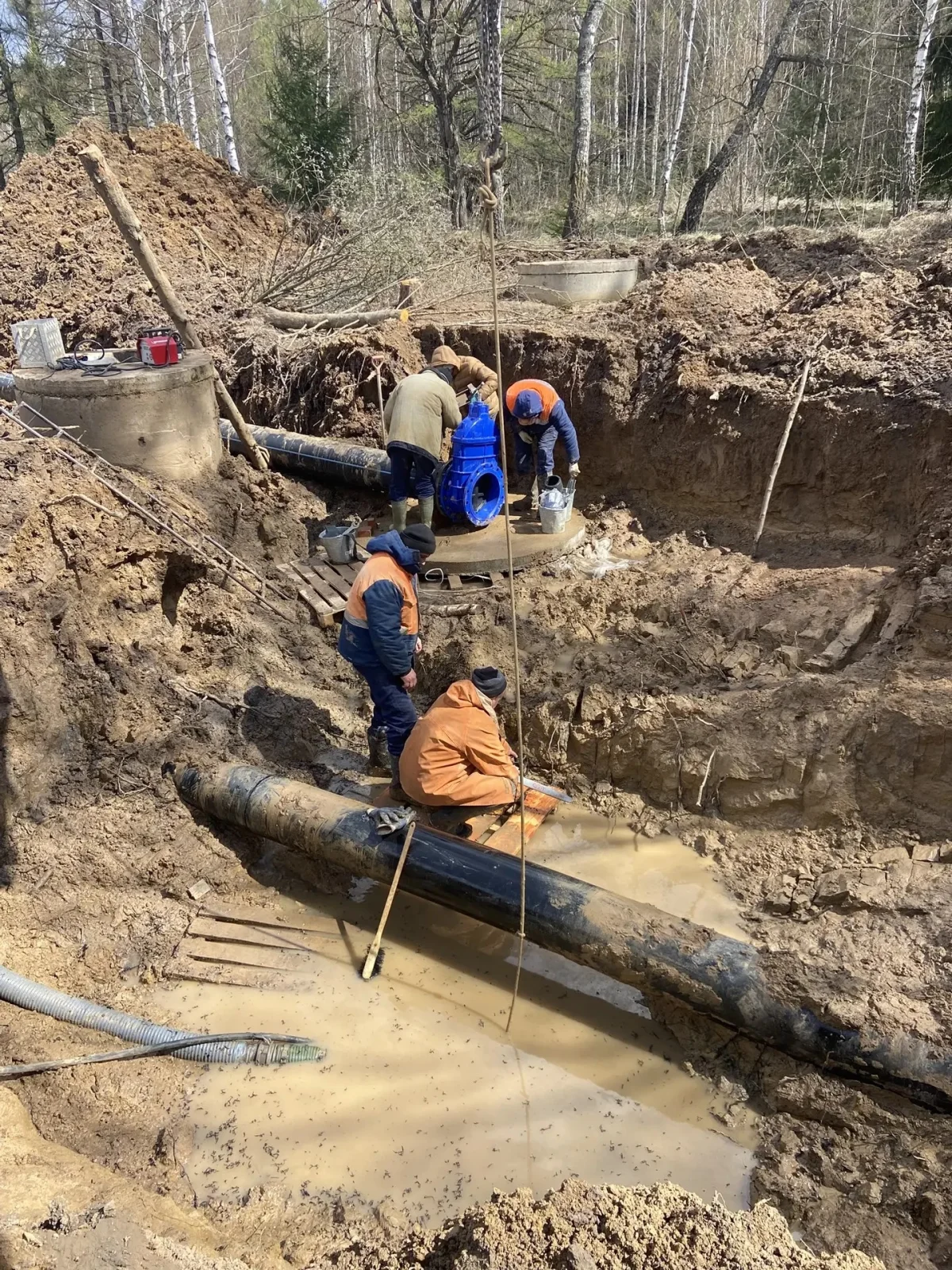 Во вторник, 28 апреля, продолжается второй этап плановых работ по переврезке нового участка водовода в селе Бурнашево Козельского муниципального округа.