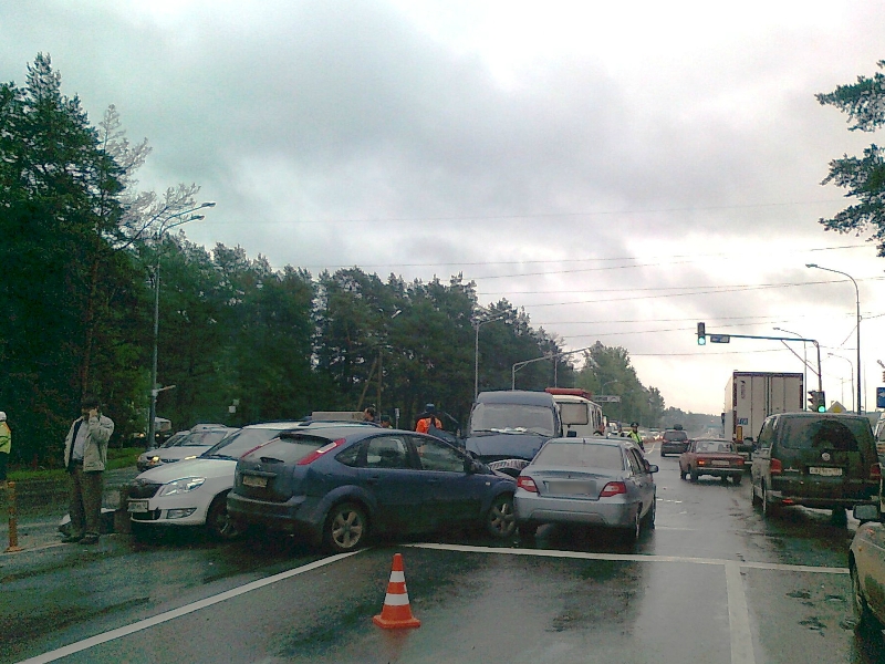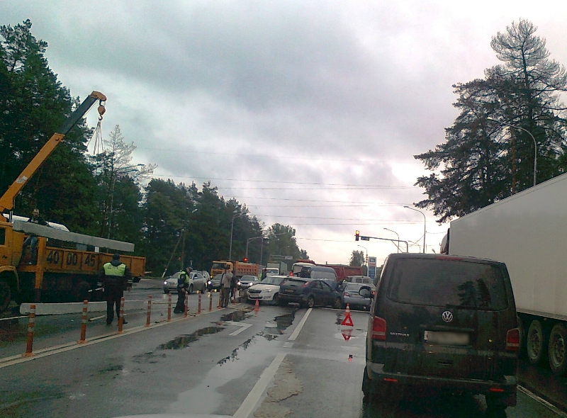 Движение в сторону центра серьезно затруднено. Пробка растянулась от Мстихино до места аварии. Сейчас на месте работают инспекторы. Подробнее о происшествии читайте позже на нашем сайте.