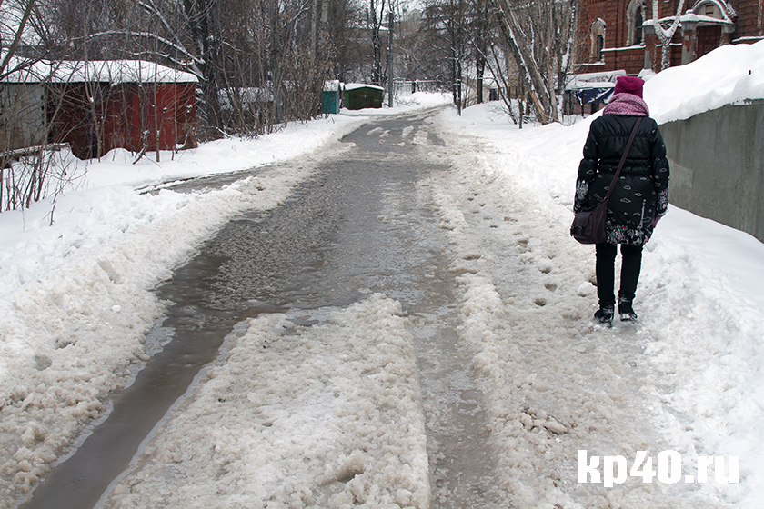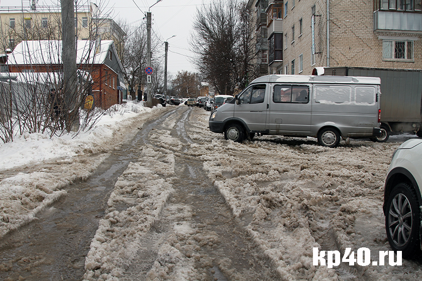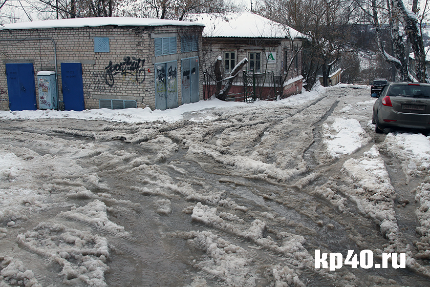 Несмотря на морозную погоду – утром градусники показывали -10 – по улице Подвойского в Калуге в среду, 20 января, потекли ручьи, а в районе бывшего областного архива даже образовалось небольшое озеро.