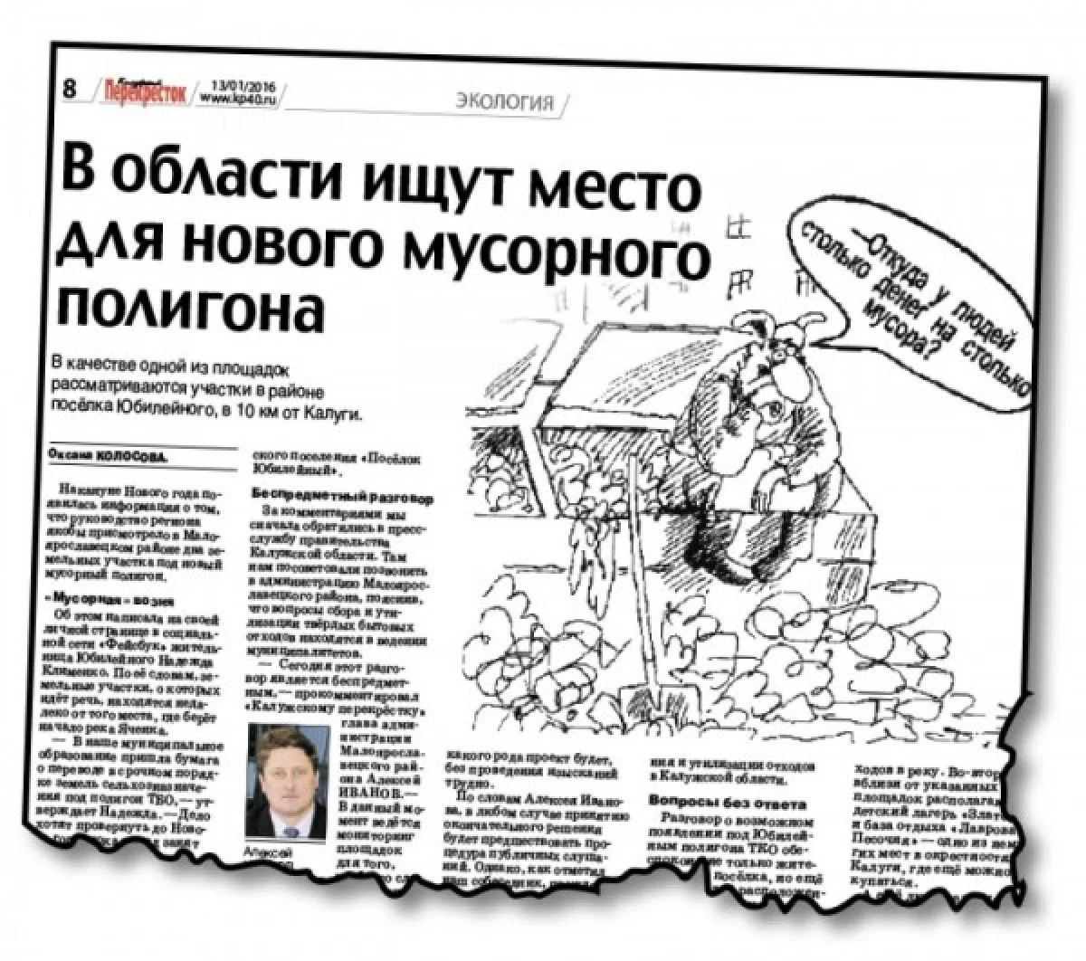 Глава МО «Пос. Юбилейный» В.С. Иванцов проект Схемы территориального планирования посёлка не подписал. Зато его подписала ещё в июле специально созданная согласительная комиссия. 17 августа документ одобрили депутаты Малоярославецкого районного собрания. Как будут развиваться события дальше, насколько серьёзно отнесутся областные и районные власти к выводам, сделанным столичным учёным, неизвестно. Но совершенно очевидно, что точку конкретно в этой истории ставить рано. Да и касательно ситуации с утилизацией отходов в регионе вообще мы имеем сплошные многоточия и знаки вопроса.
