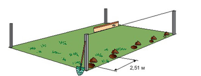 Длина столбов рассчитывается из высоты забора и глубины подземной части столба – она составляет около 30% от высоты наземной части. Вначале с помощью рулетки устанавливаются метки в местах будущих ям для опоры.