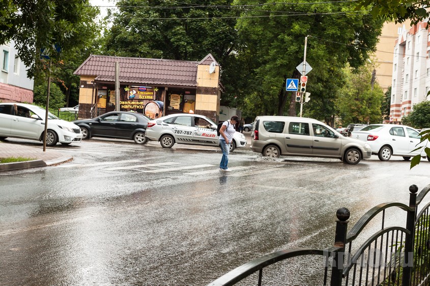 «Река» стекает по тротуару. Прохожие лавируют между её «потоками».