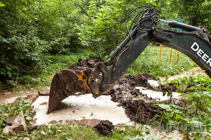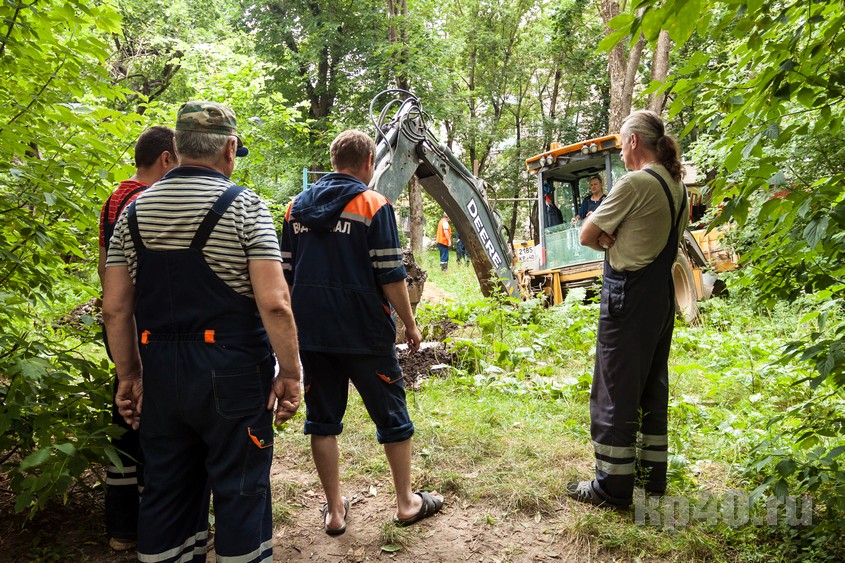 На месте трудятся работники водоканала.