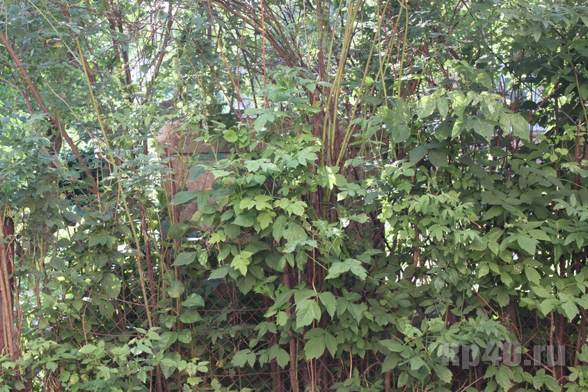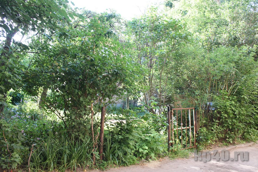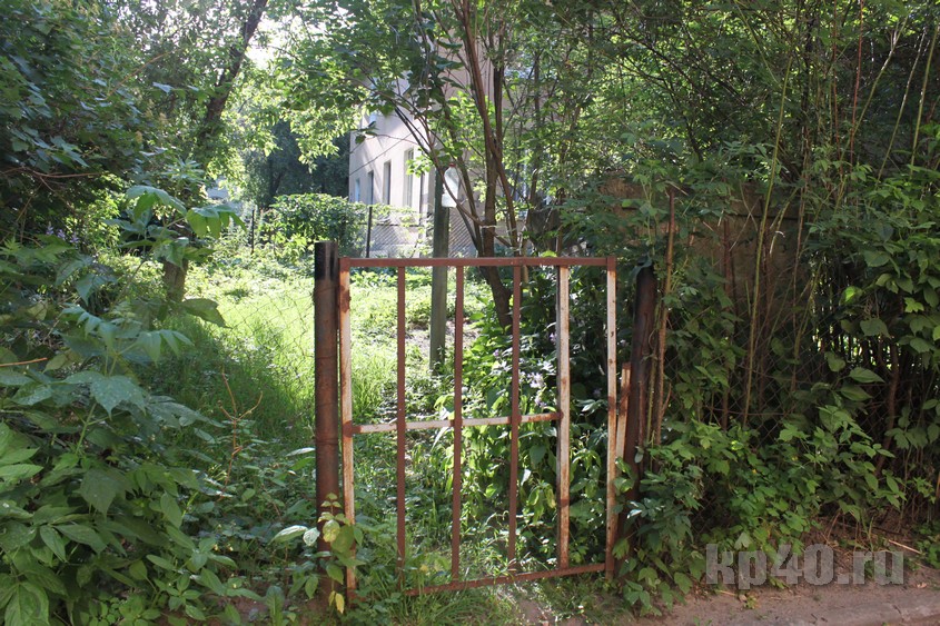 В центре двора стоит нечто, не поддающееся описанию: ржавый железный забор огораживает какие-то заросли. Среди деревьев, сорной травы то тут, то там виднеются цветы. Есть и калитка. Если её открыть, то по дорожке можно пройти к песочнице.