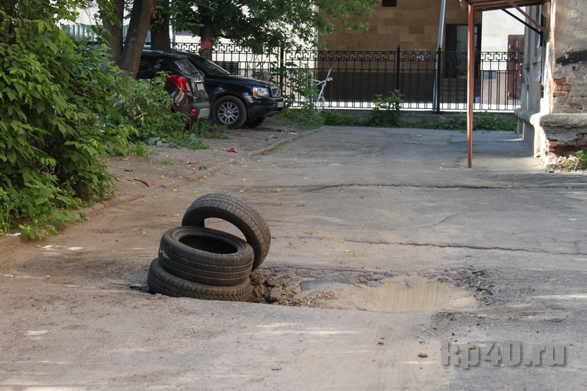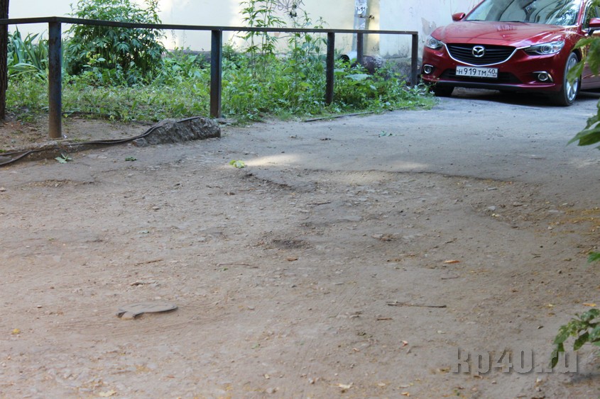 Об асфальте напоминают лишь небольшие проплешины на земле. Весь двор в рытвинах и канавах. Удивительно, как ещё умудряются проезжать машины.