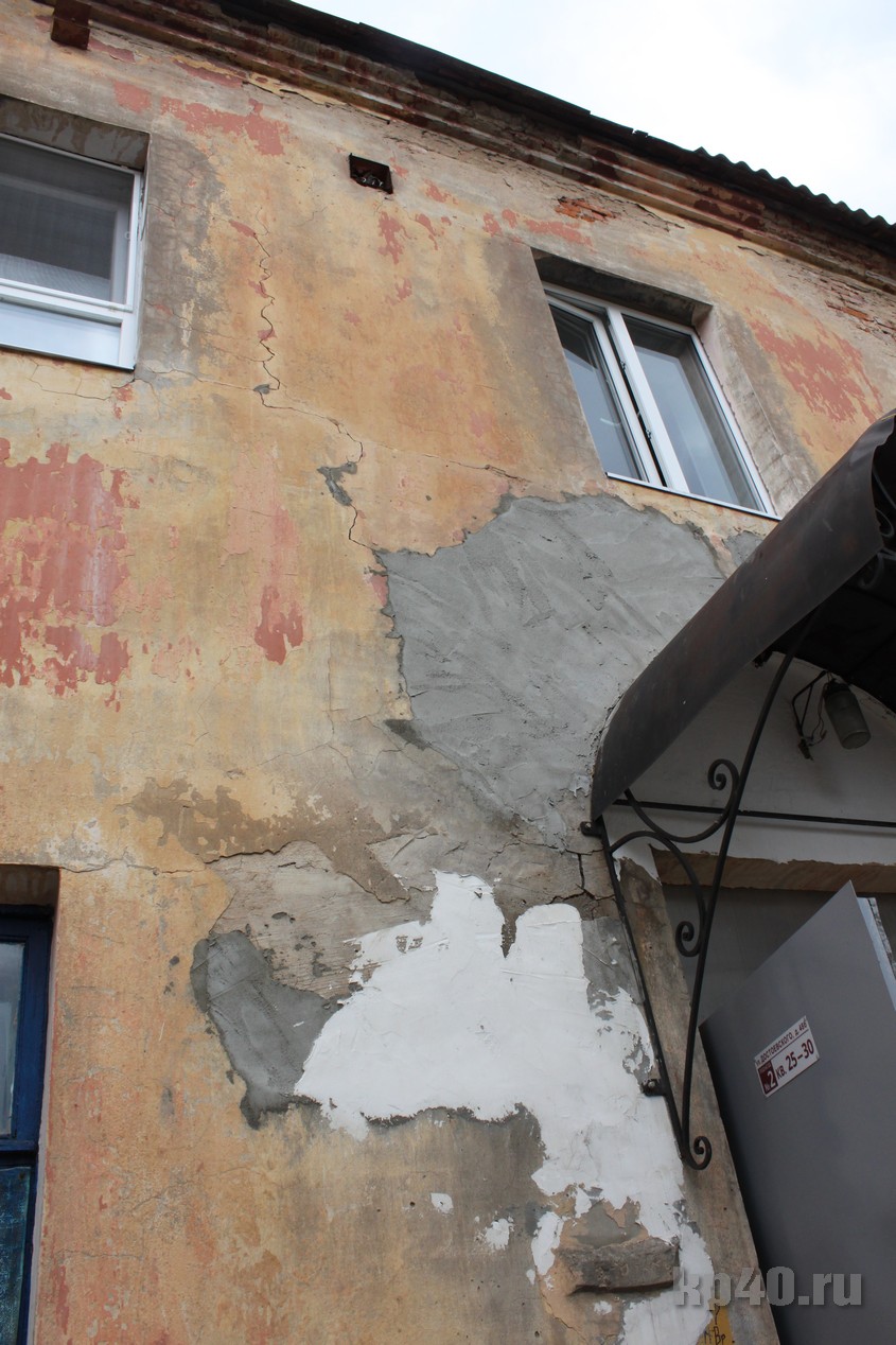 Недавно у второго подъезда обрушилась часть стены. Её просто закрыли фанеркой. И всё.