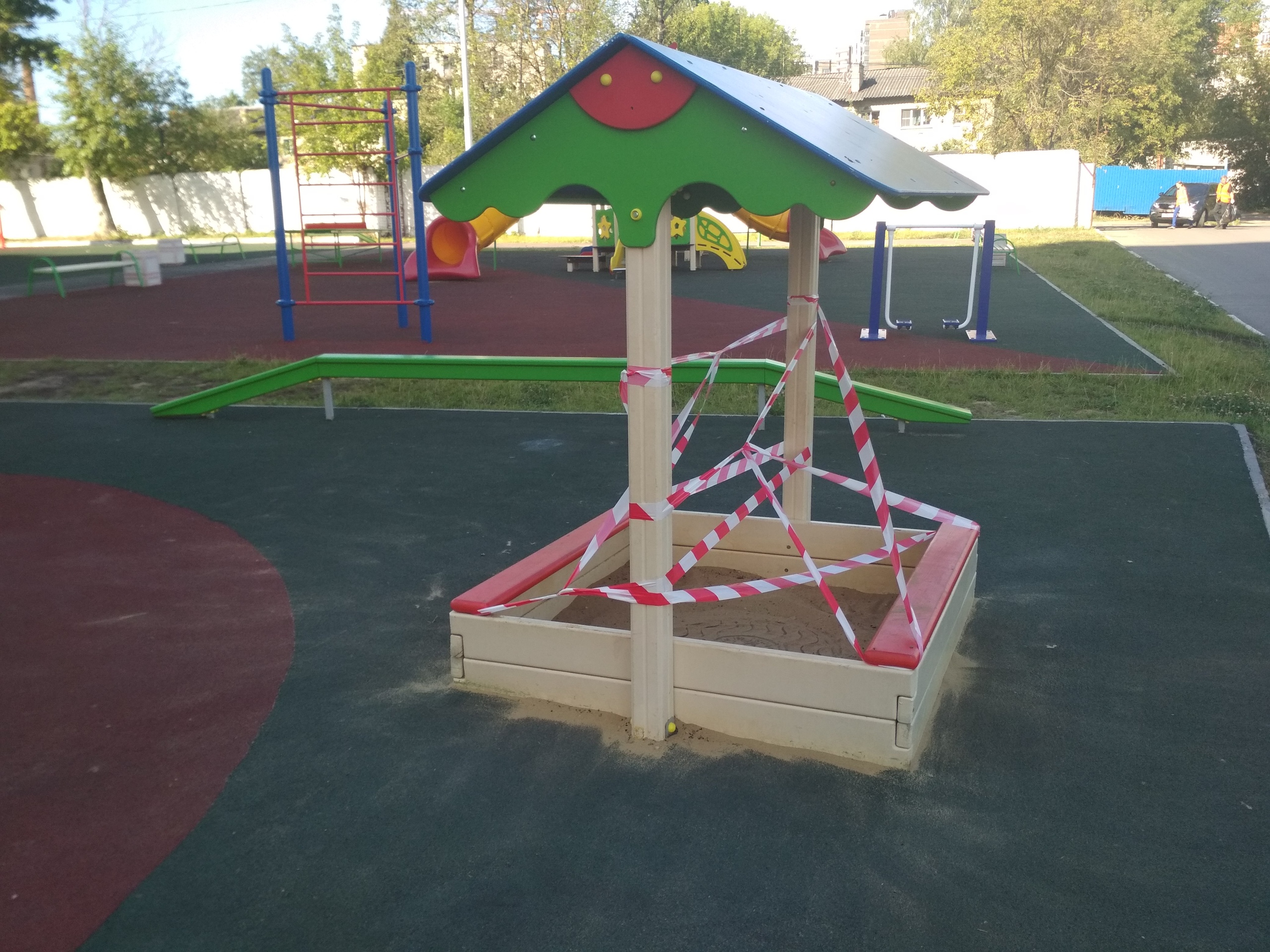 - Эта детская площадка принадлежит городу. На балансе управляющей компании она не стоит. Я видел этот люк. Люк замоноличен. Это старые коммуникации. [Сейчас] там коммуникаций нет. Жители попросили меня туда песка привезти. Я, когда буду завозить при подготовке к зиме, просто добавлю туда песок. Вот, в принципе, и всё.