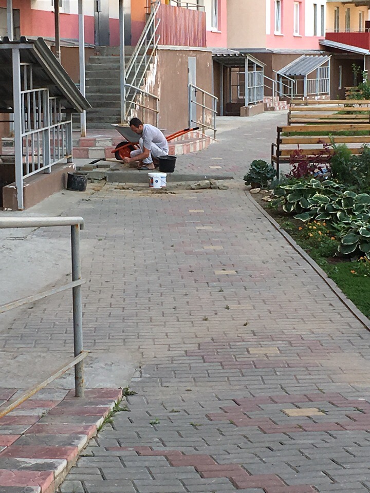А этот житель потратил свой выходной день, чтобы привести в порядок тротуарную плитку на Аллейной, 19.