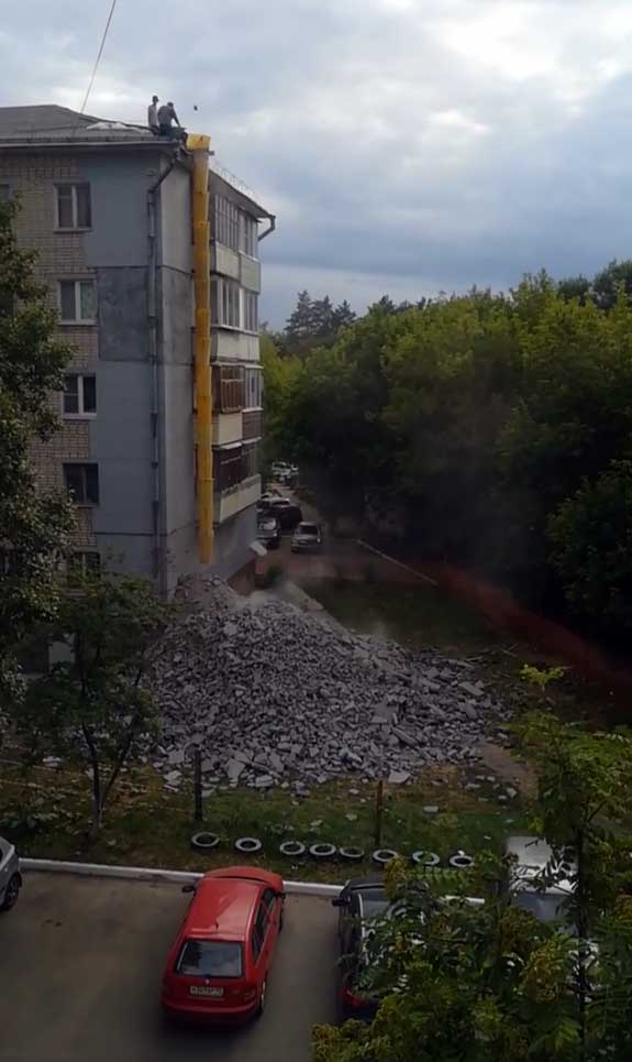 Опасный капремонт: рабочие кидали булыжники с крыши пятиэтажки