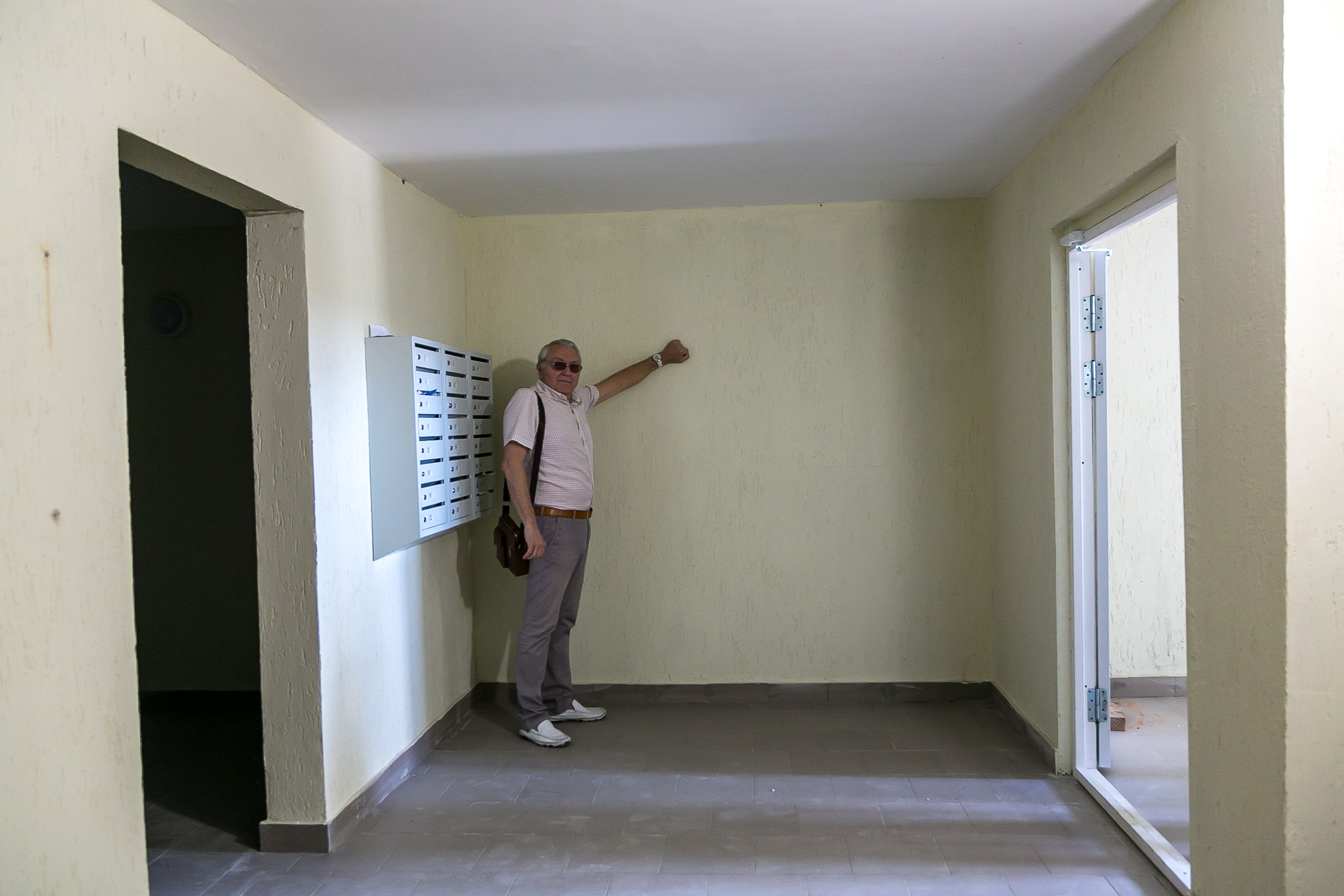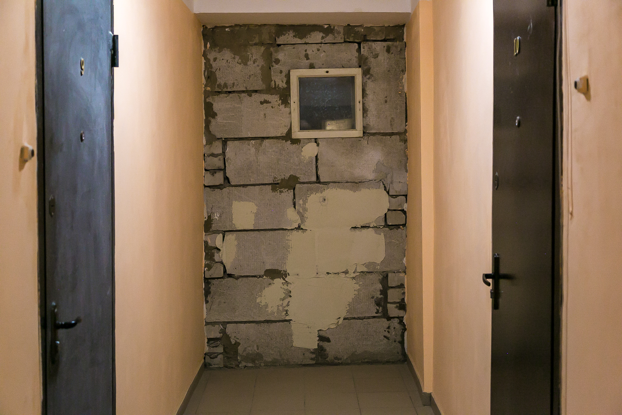 О том, что в этом месте заделана шахта лифта, можно догадаться, постучав по стене.