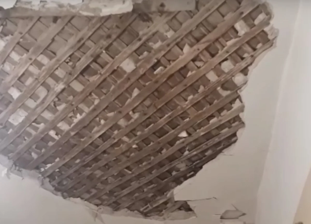 - Специалисты УК выезжали на место. Потолок обшили фанерой. Куски штукатурки, угрожающие обрушением, предварительно удалены. Акт выполненных работ подписан собственниками.