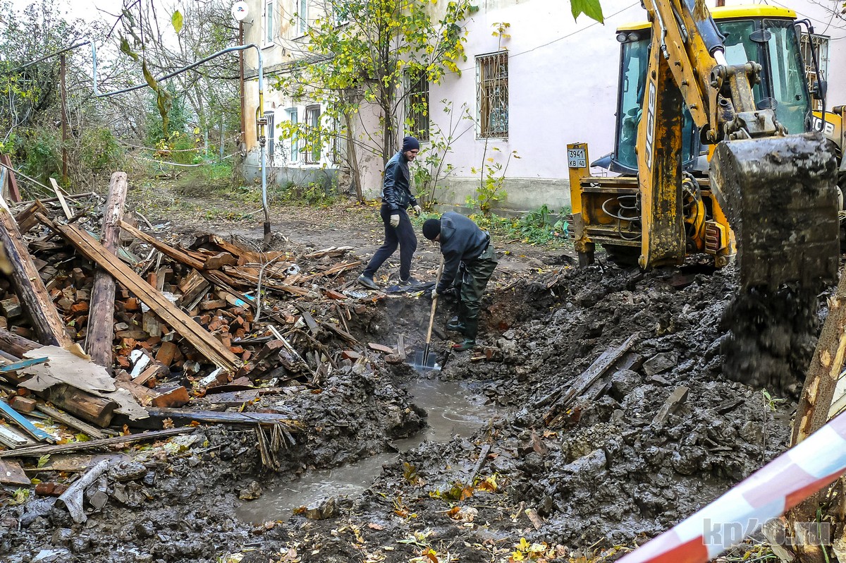 - Завершить работы по сносу дома подрядчику не позволило обводнение грунта в результате аварии на водопроводе.