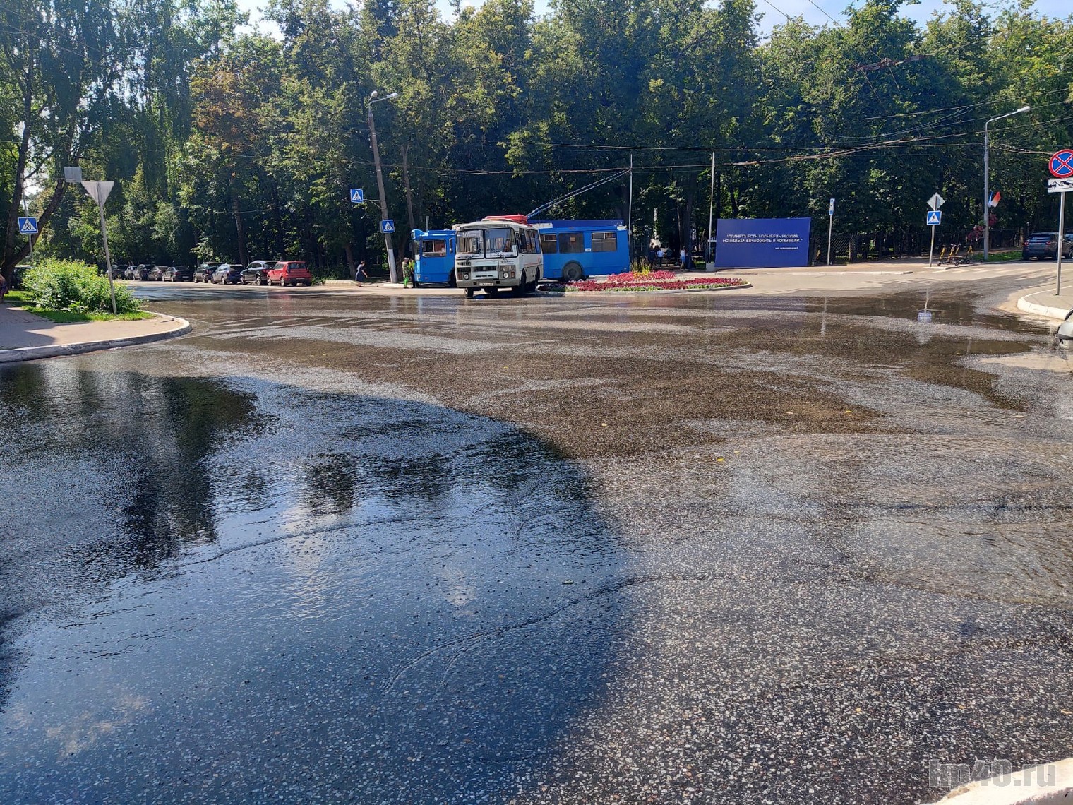 Место прорыва трубы.