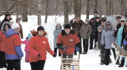 В последний день марта в Сосновой роще проходили гонки на собачьих упряжках.