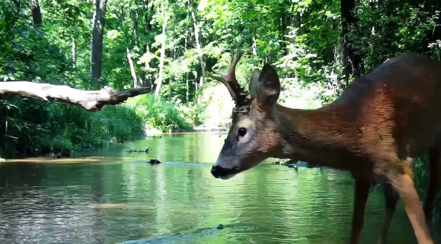 В заповеднике «Калужские засеки» небольшая лесная река превратилась в популярное место для водопоя среди местных обитателей.
