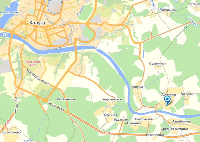 Выехать из Калуги по дороге на Ждамирово и следовать до указателя направо «Авчурино».
