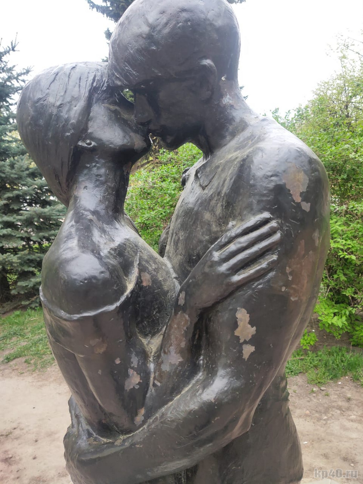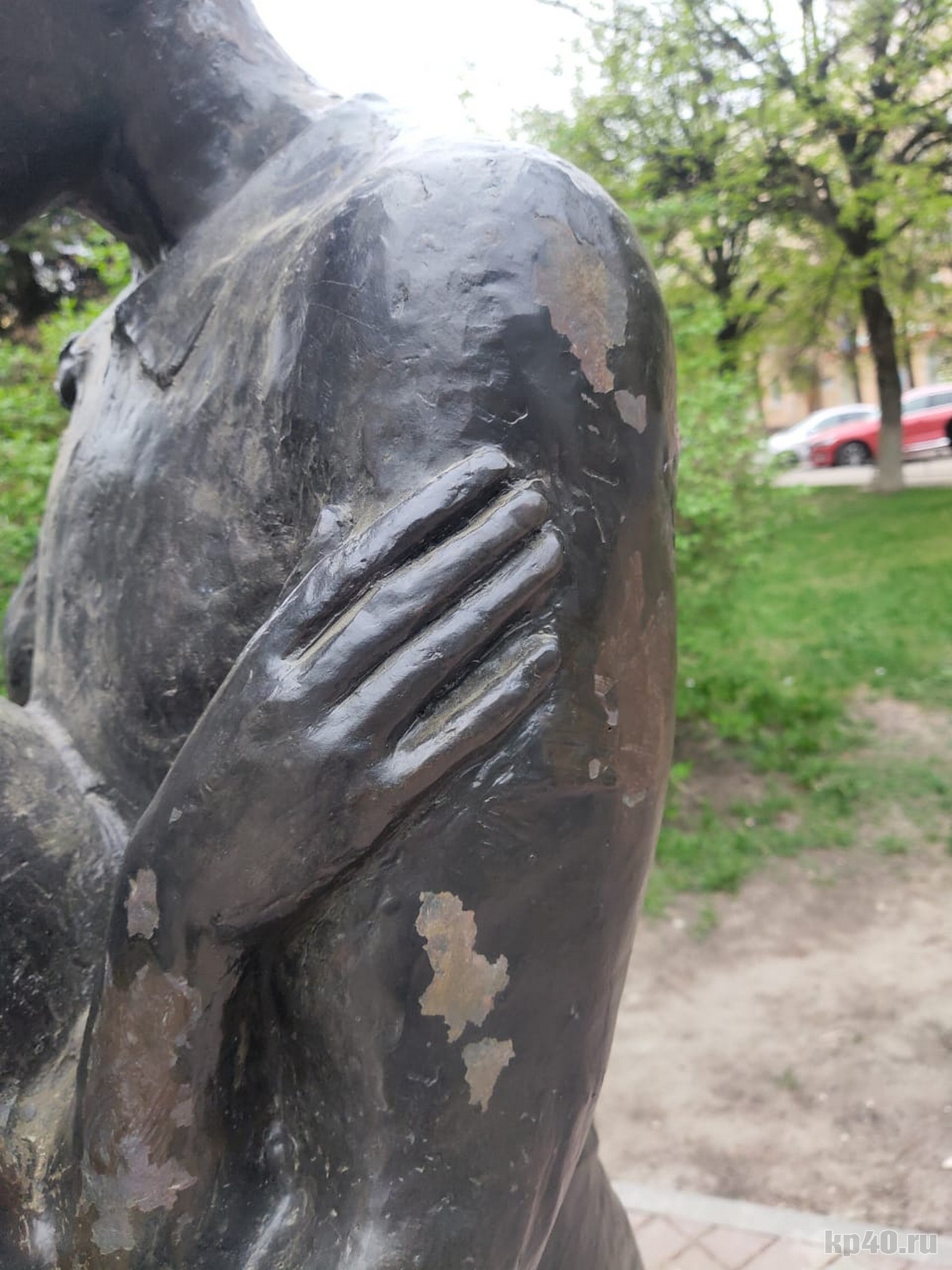 Осенью прошлого года на Театральной площади в Калуге установили памятник «Поцелуй». На днях наши читатели сообщили, что скульптура начала облезать.