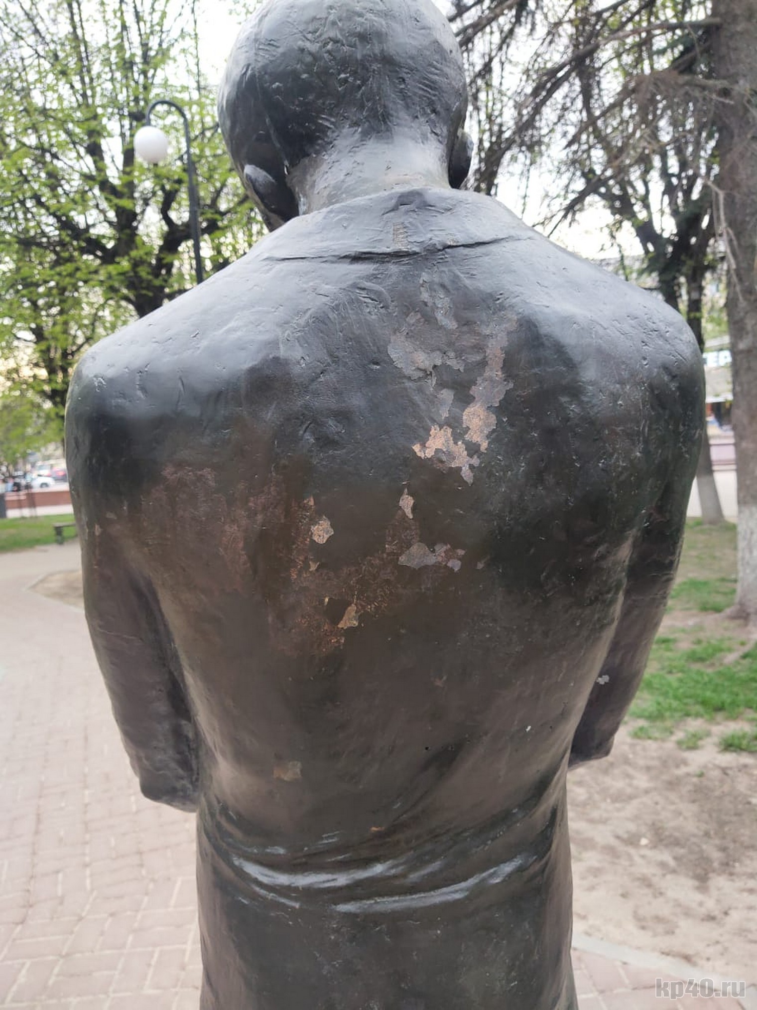 Как пояснила скульптур Светлана Фарниева, причиной стали микротрещины, в которые попала влага. На днях в Калугу приедет литейщик, чтобы исправить ситуацию.