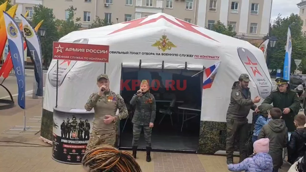 Рядом с порожками драмтеатра военные шатры раскинул облвоенкомат. Под лихие песни в исполнении Андрея Бегуна желающим предлагали записаться в ряды вооруженных сил по контракту.