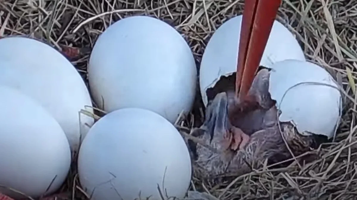 Первый аистенок вылупился в калужском гнезде в прямом эфире