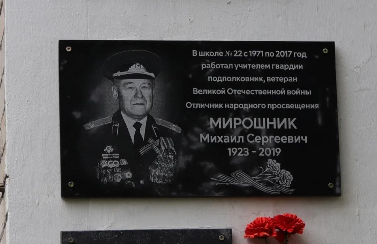 25 мая на фасаде школы № 22 была открыта мемориальная доска в память о военруке школы, гвардии подполковнике Михаиле Мирошнике. В торжественной церемонии приняли участие Глава городского самоуправления Калуги Юрий Моисеев и депутат Гордумы, военный комиссар Калуги Андрей Иванов.