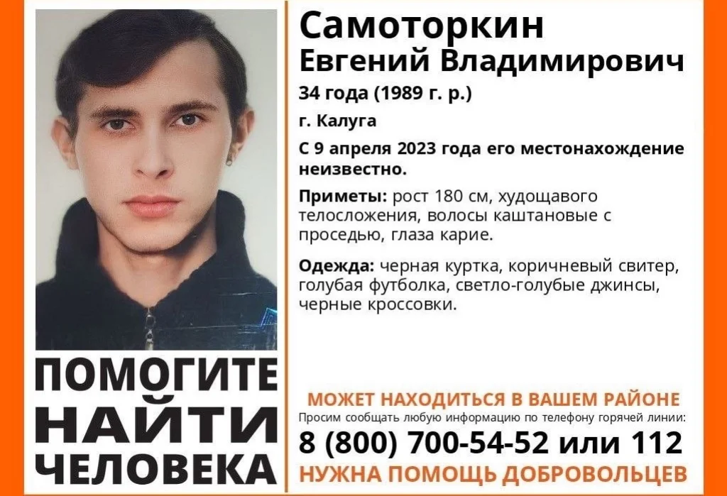 34-летний Евгений Самоторкин пропал в Калуге 9 апреля.