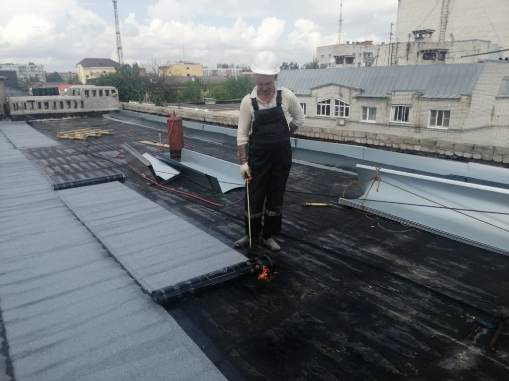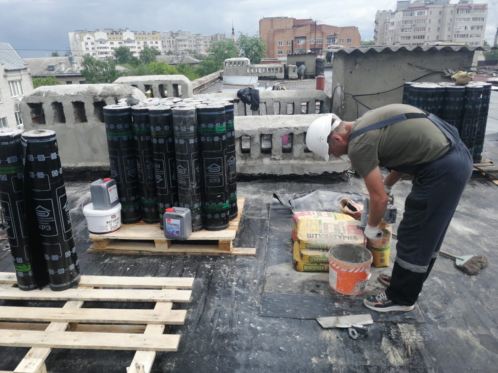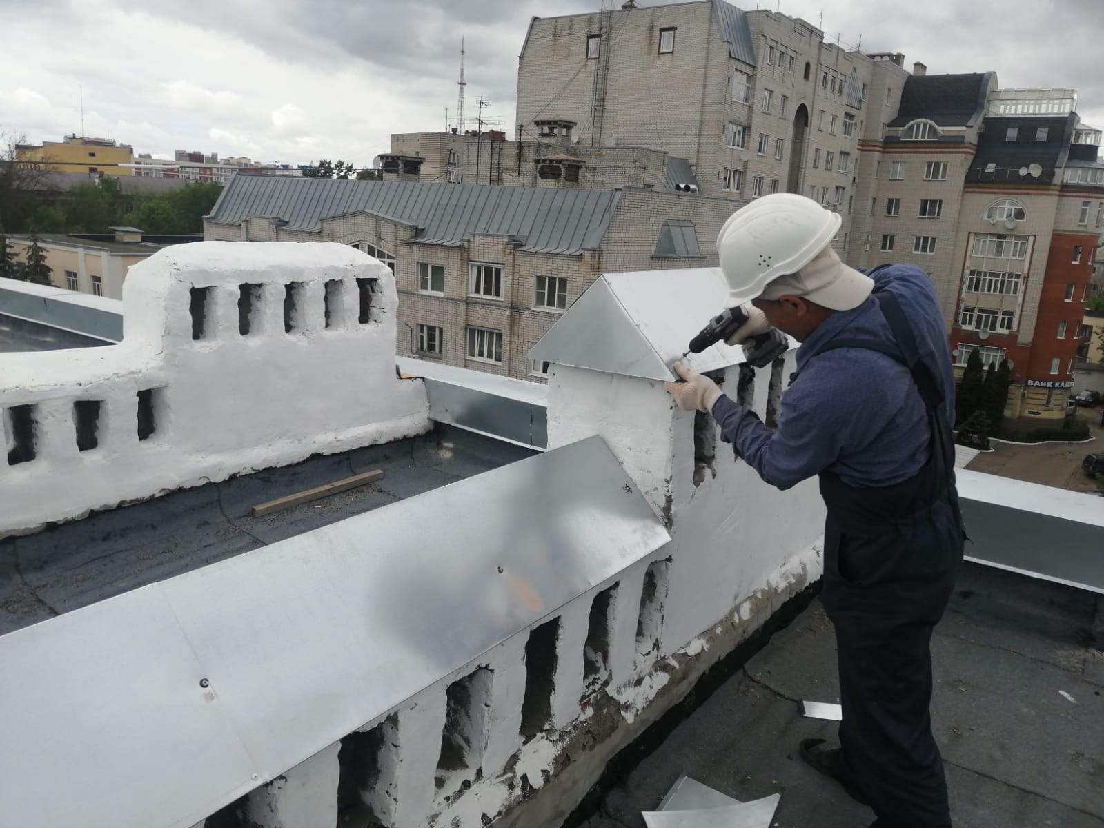 Быстро завезли материал, отгородили рабочую зону, демонтировали старое покрытие, положили первый слой нового водоотталкивающего термостойкого материала. Осталось смонтировать отливы, восстановить вентиляционные каналы, сделать откосы и положить второй слой покрытия.