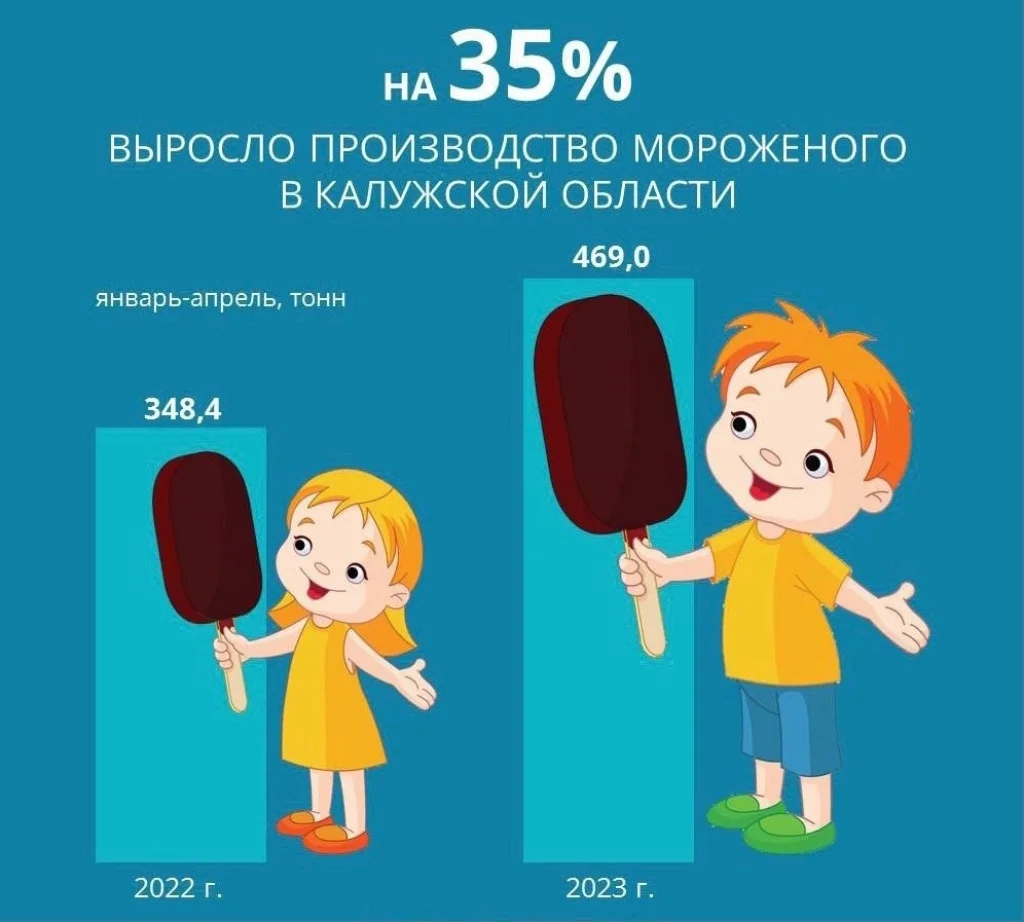 В четверг, 8 июня, в Калугастат сообщили об увеличении производства мороженого в Калужской области.