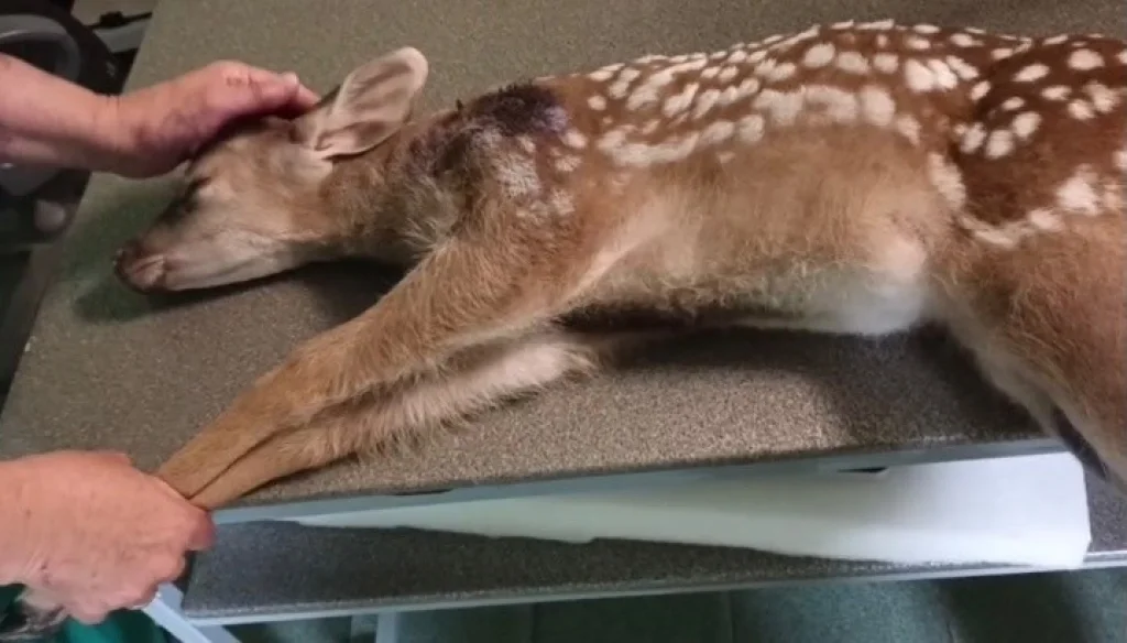 В понедельник, 19 июня, в телеграм-канале центра реабилитации диких животных «Феникс» опубликовали видео с новым пациентом. Им оказался олененок, которого порвали собаки. У животного ранена спинка, плечо и гортань, под кожу попал воздух, так как собаки таскали его по земле.