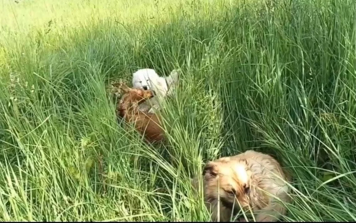 Во вторник, 19 июня, центр реабилитации диких животных «Феникс» опубликовал видео, на котором лосенок Ихо играет и отдыхает в поле с собаками.