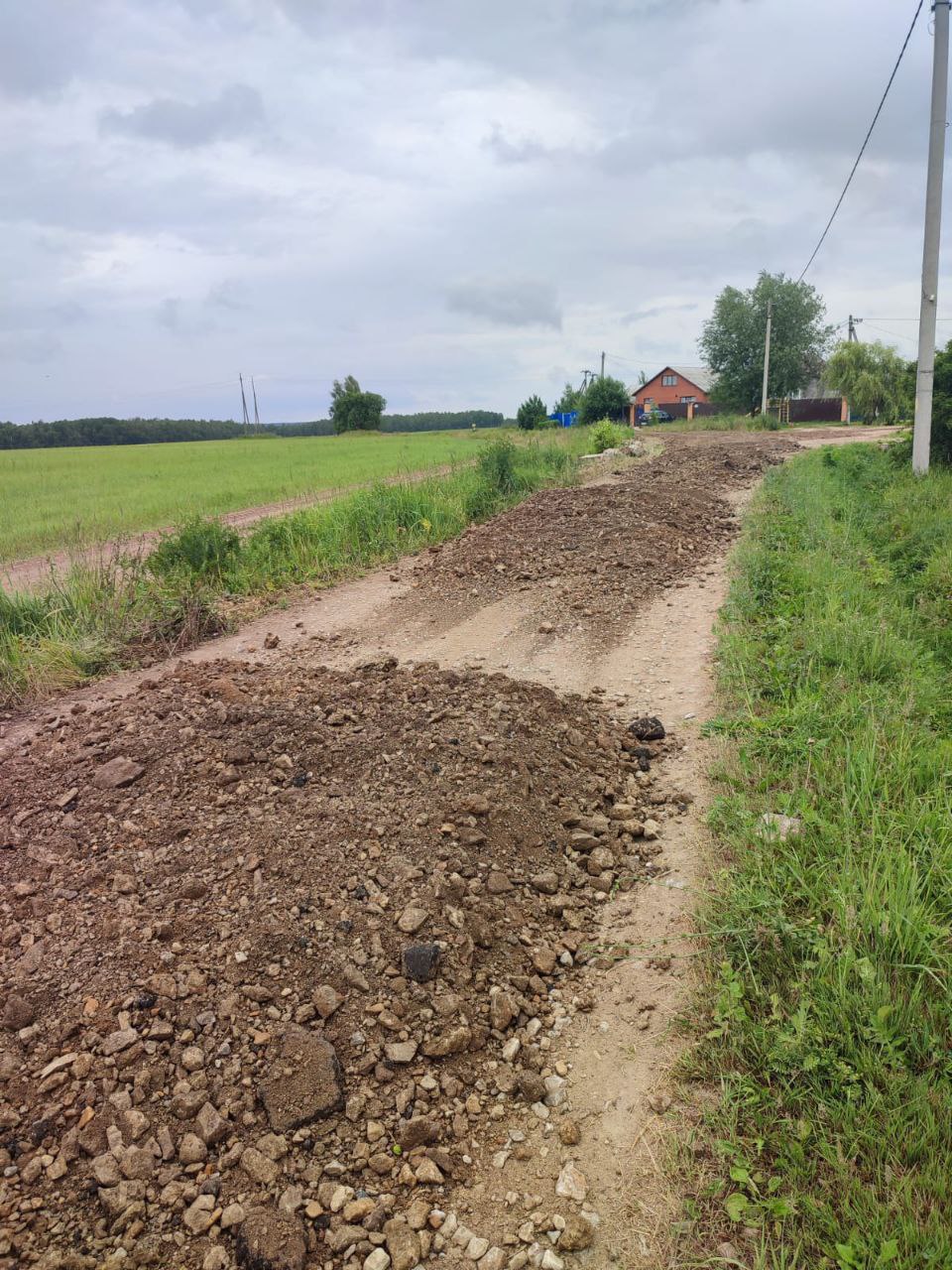 - Здравствуйте. Администрации сельского поселения начала работы по укладке устилающего слоя ул. Радужной с последующей отсыпкой щебнем. Но на начальном этапе жители улицы создали препятствия для выполнения работ, поэтому было принято решение остановить их и перенести работы на другую улицу. Все материалы с дороги будут убраны до 15 июля, по возможности, постараемся раньше.