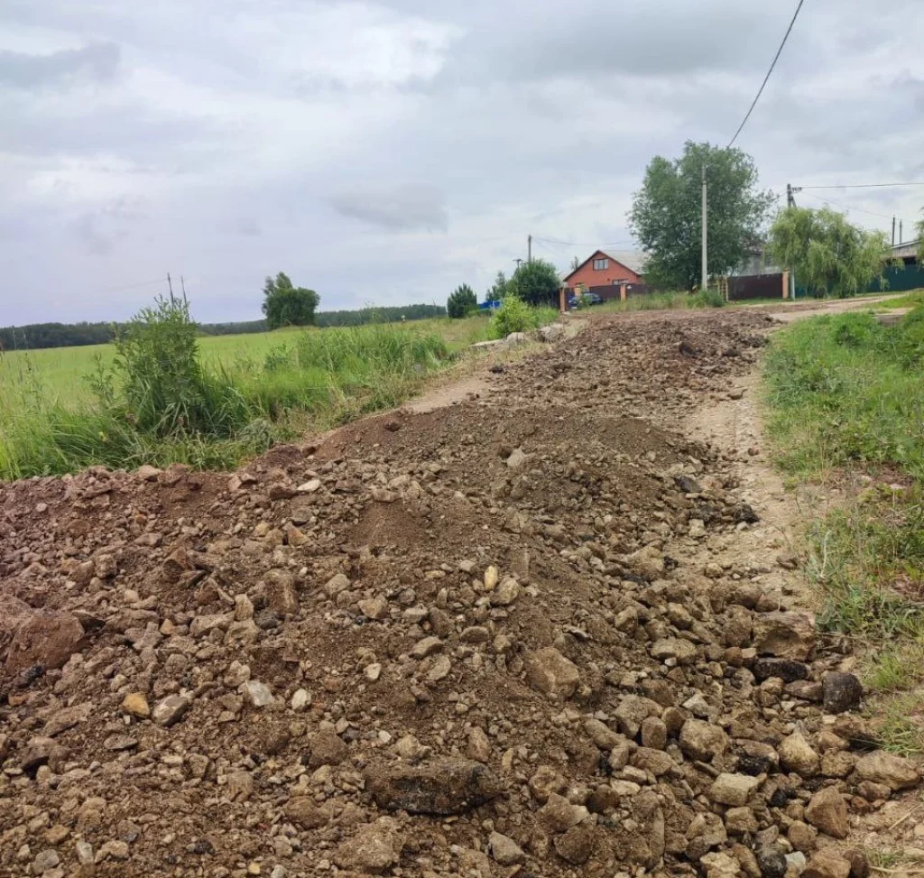 В Ферзиковском районе хорошую дорогу завалили глиной, землей и камнями