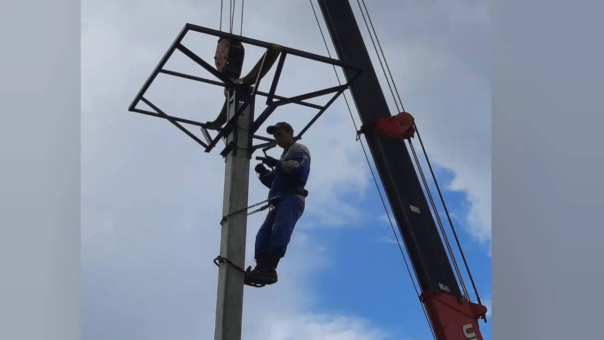 Электрики из Калуги сделали основание для гнезда аистенка Пятачка