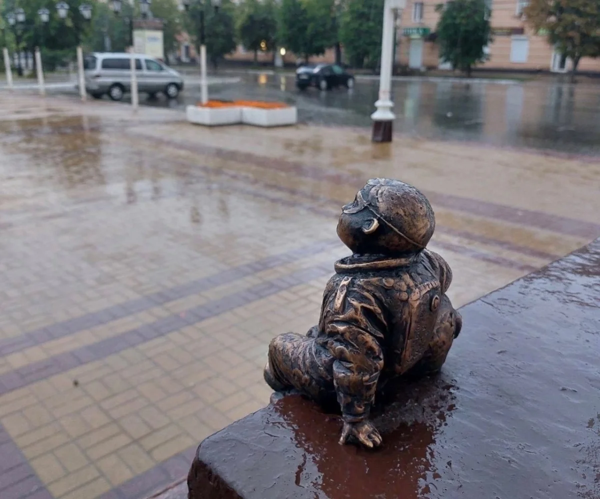 Уже две недели фигурка маленького космонавта в театральной маске красуется возле Калужского областного драматического театра.