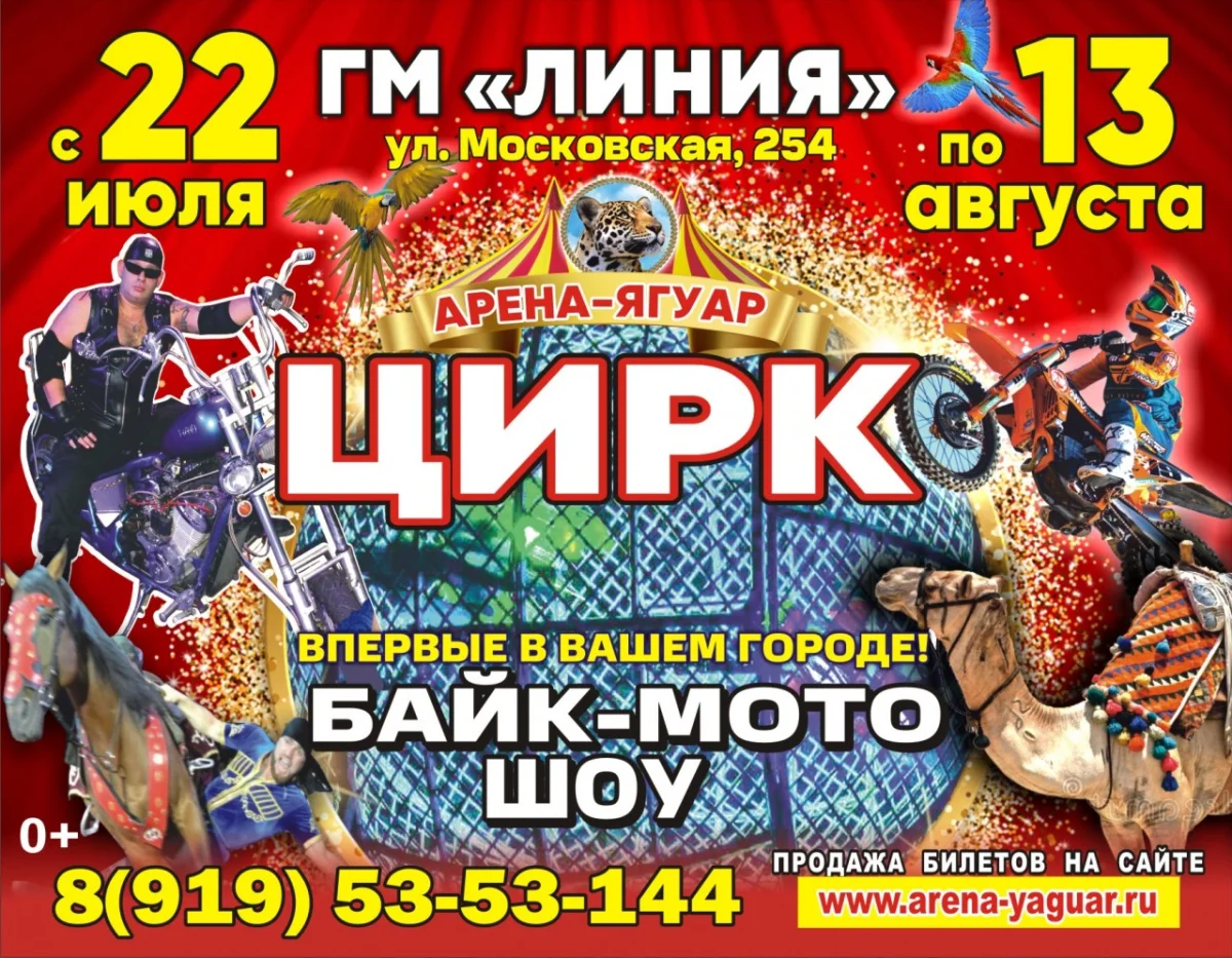 Приходите в московский Цирк «Арена-Ягуар» вместе со всей семьей и наслаждайтесь зрелищными номерами, которые запомнятся Вам надолго! Только в нашем цирке вы сможете увидеть настоящих профессионалов своего дела!