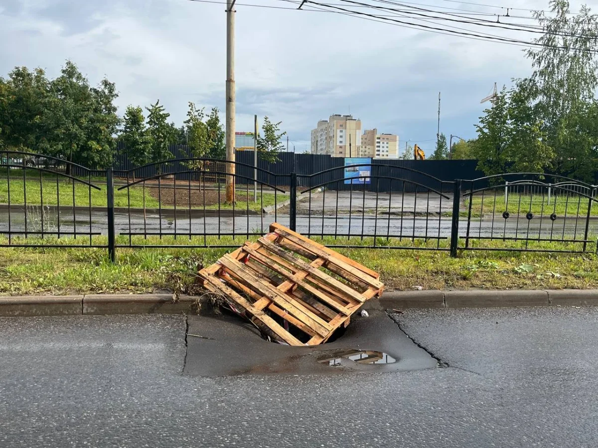 В Калуге на улице Генерала Попова провал прикрыли поддоном
