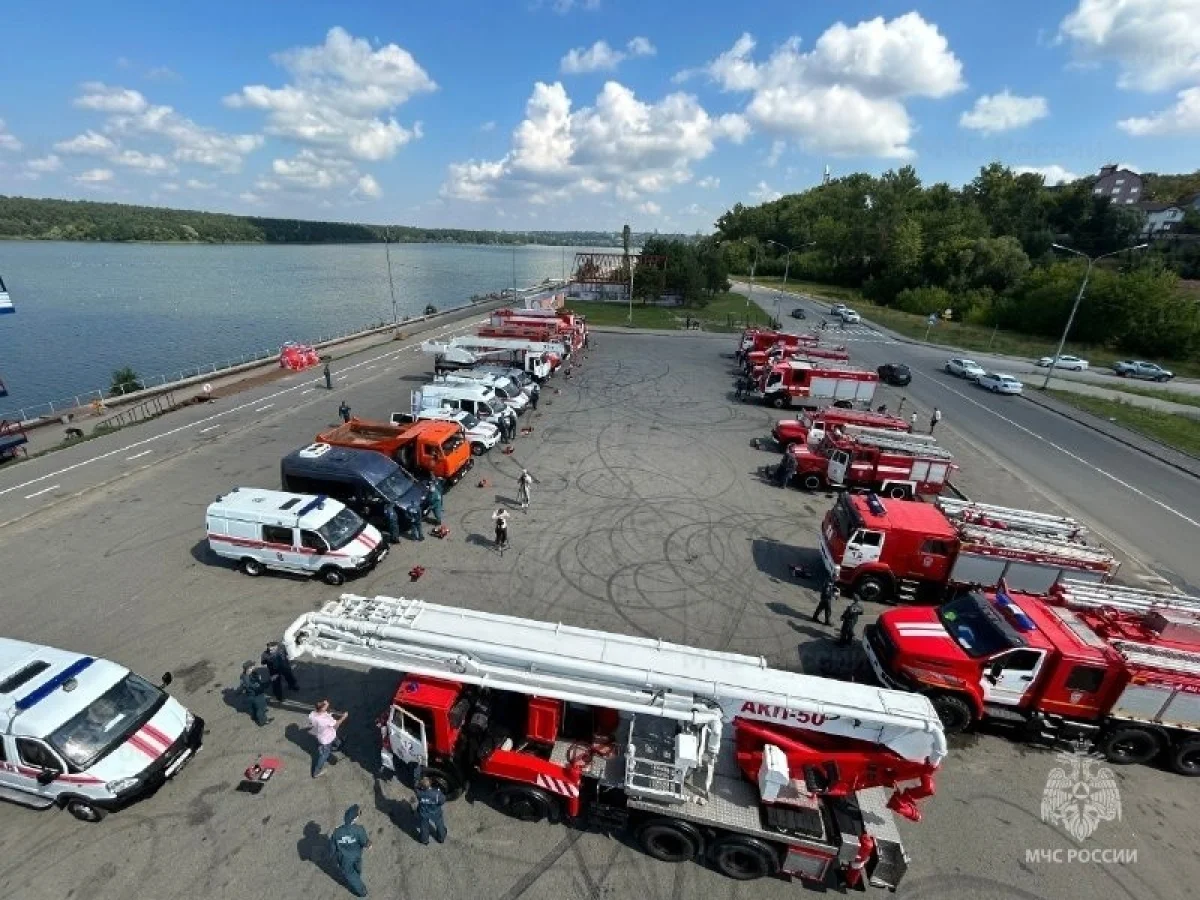 Утром в четверг, 3 августа, на набережной Яченского водохранилища в Калуге прошел смотр техники МЧС. Фото опубликовала пресс-служба регионального управления.