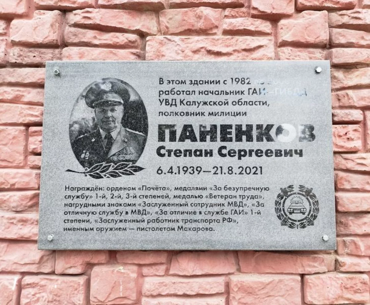 В понедельник, 21 августа, в Управлении Госавтоинспекции по Калужской области открыли мемориальную доску в честь бывшего начальника управления ГАИ- ГИБДД УВД Калужской области полковника милиции в отставке Степана Паненкова, рассказали в пресс-службе ГИБДД.