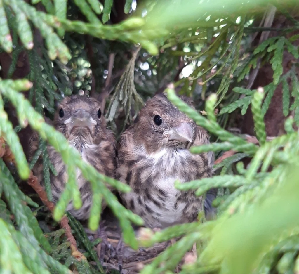 Пернатых во дворе случайно заметил муж Натальи, обративший внимание, что в тую постоянно залетает птица.