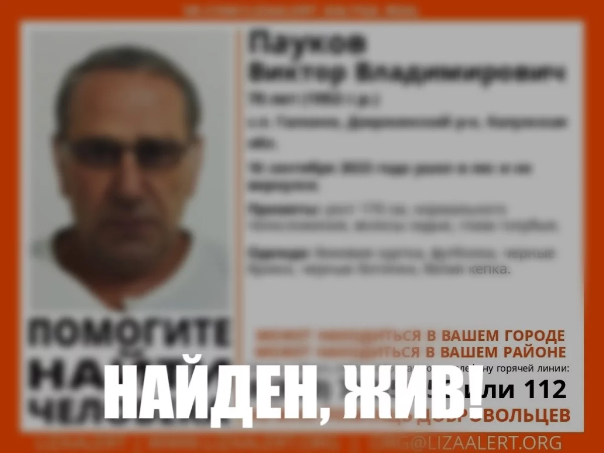 В воскресенье, 17 сентября, поисковики отряда "Лиза Алерт" сообщили, что мужчина найден живым.