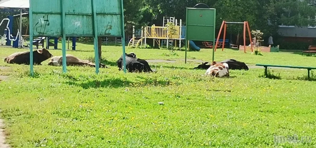 Жителей Калуги напугало стадо коров во дворе многоэтажного дома