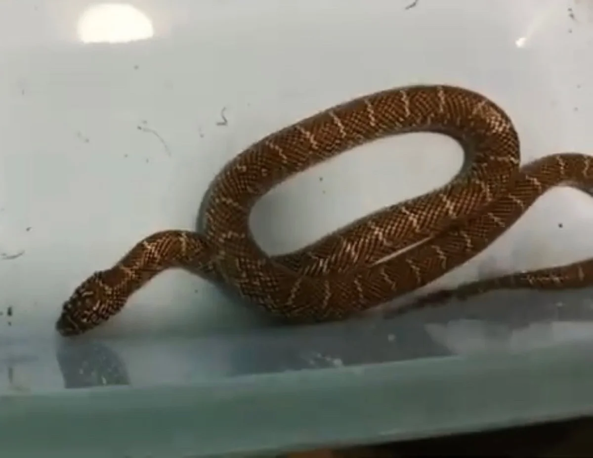Беглеца удалось изловить. Им оказался полоз, который, вероятно, выполз из чьей-то квартиры.