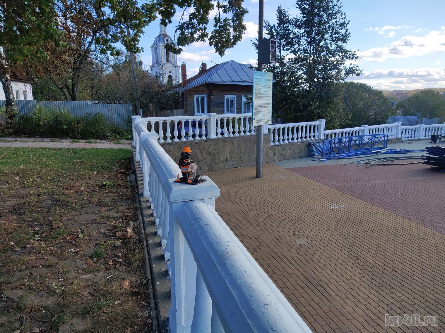 В пятницу, 13 октября, под дубом у «шарика» в Калуге установили четвертого маленького космонавта. Поверх скафандра у него одежда дорожника – светоотражающий жилет и каска.