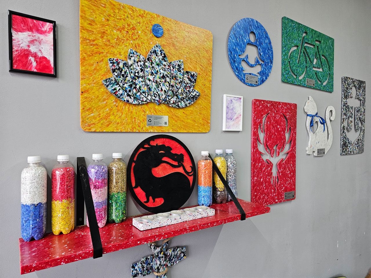 Пока учёные ломают голову над изобретением экологически чистого пластика, команда «Дрим Пластик» уже год делает из отходов лавочки, которые не по зубам вандалам, брелоки «Матрешконавты». Компания производит кубки и медали, картины, которые сами они называют экопанно, подставки под телефон, логотипы и карты областей.