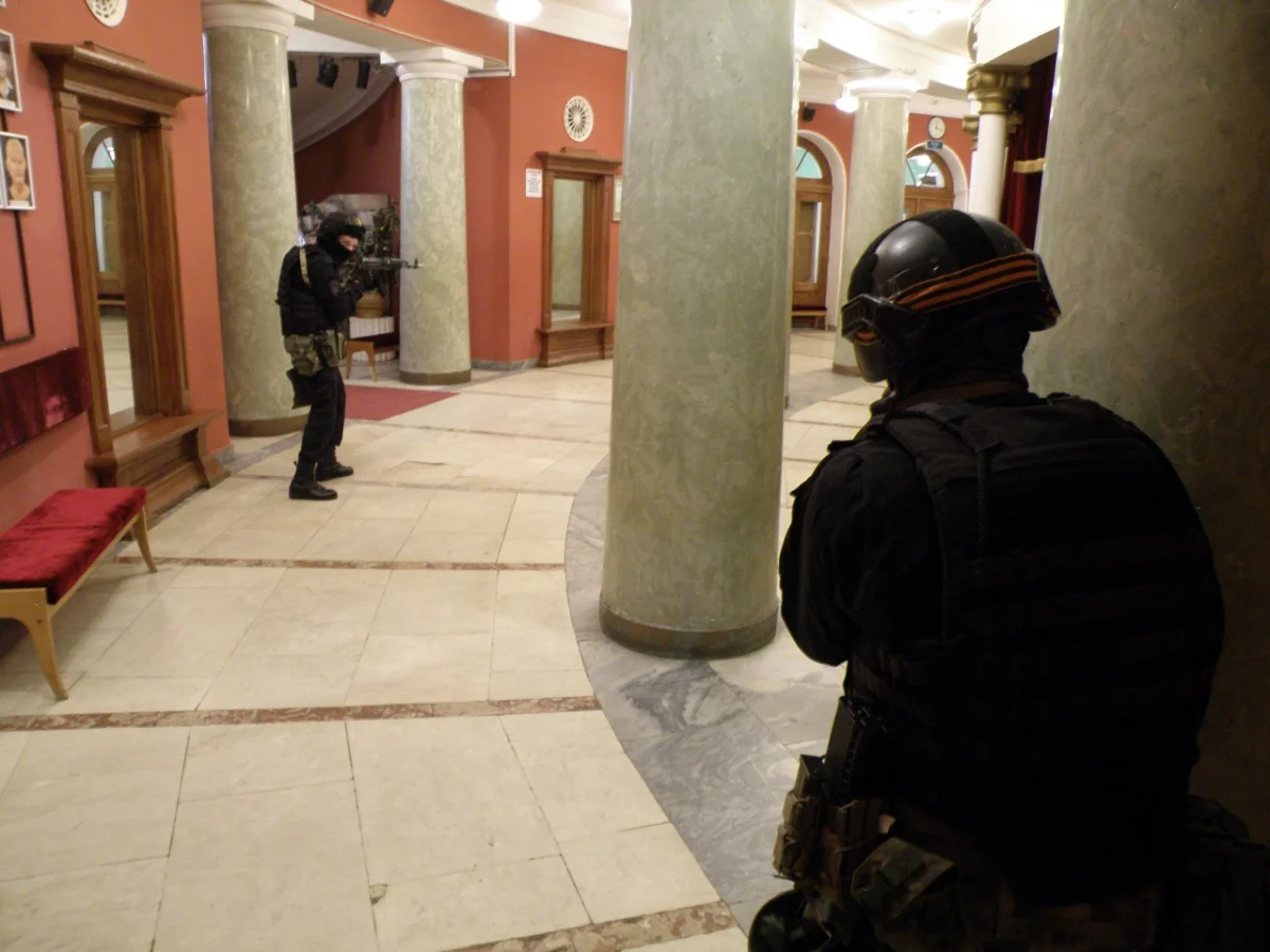 Согласно легенде, четыре преступника захватили 26 заложников. Переговоры не увенчались успехом, поэтому троих террористов условно застрелили, а одного задержали.
