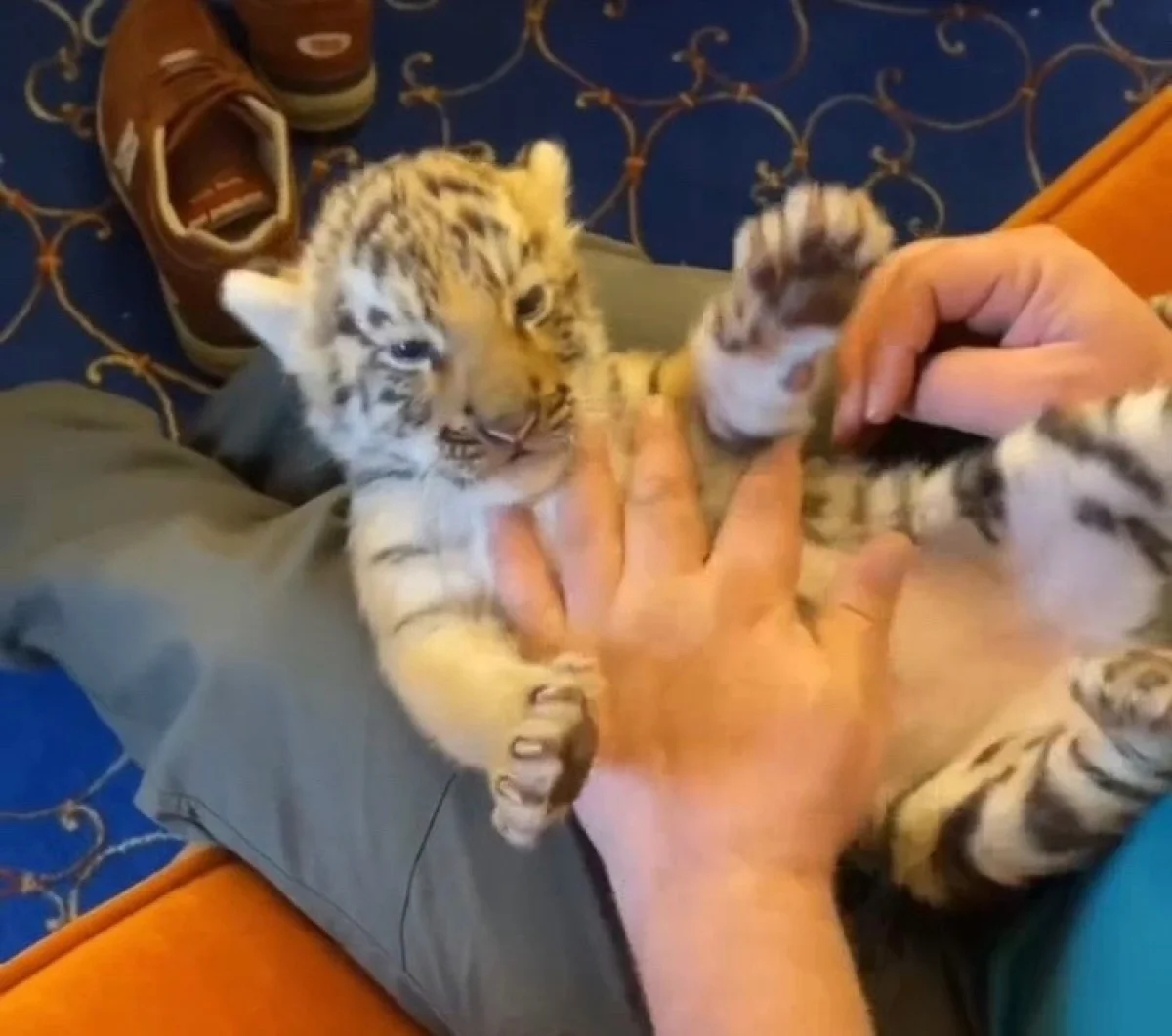 Владелец калужского зоопарка Ваграм Погосян опубликовал видео с подрастающим тигренком.
