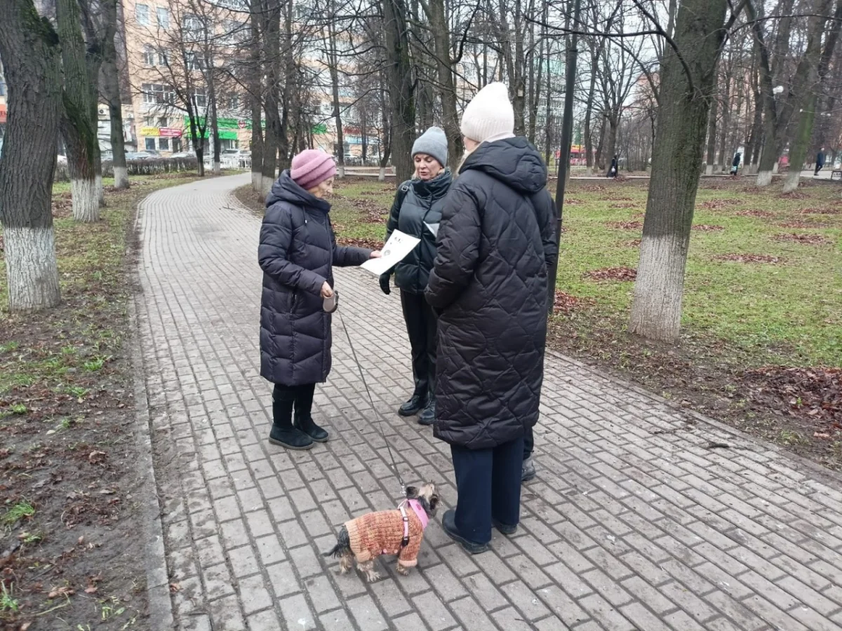В сквере имени Волкова, Мира и прилегающим к ним территориям участники рейда рассказывали выгуливающим своих питомцев калужанам правила прогулок с собаками.
