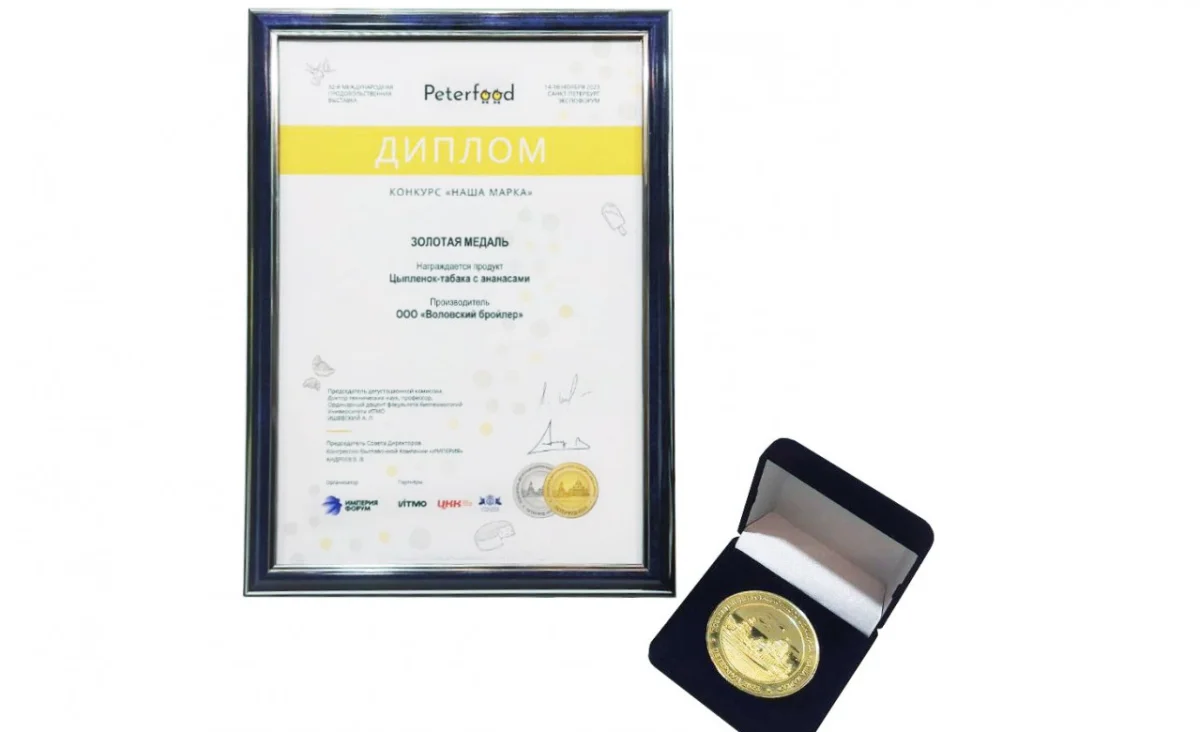 ООО «Воловский бройлер» получил золотую медаль на Международная выставке «Петерфуд-2023»